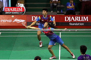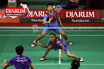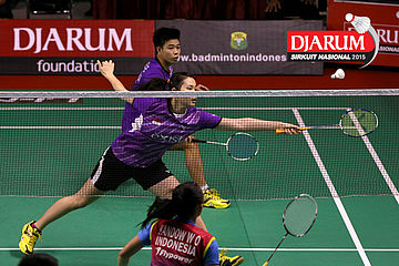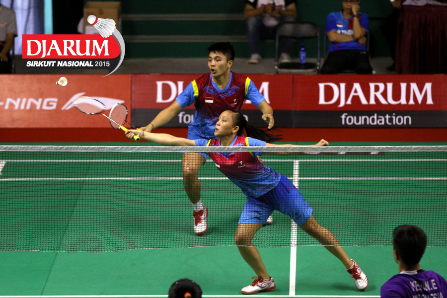 Zachariah Josiahno/Winny Oktaviani (Tangkas) bersiap menghadang serangan.