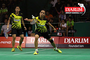 Dian Fitriani/Nadya Melati (Pertamina Fastron) saling berkoordinasi.