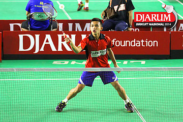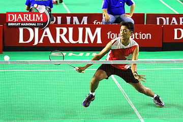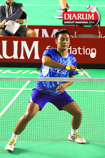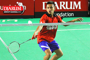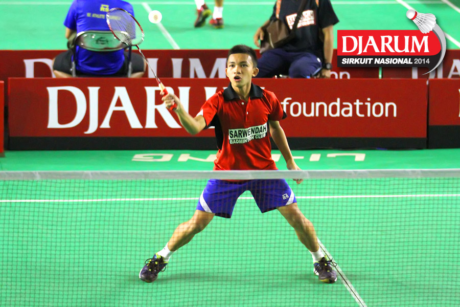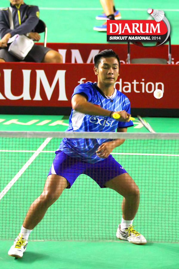 Hilmi B (PPLP Sulut) bersiap menyambut serve dari M. Zahrul Sani (Sarwendah)