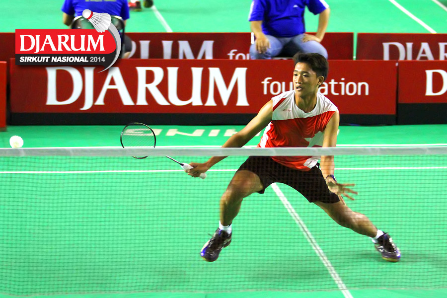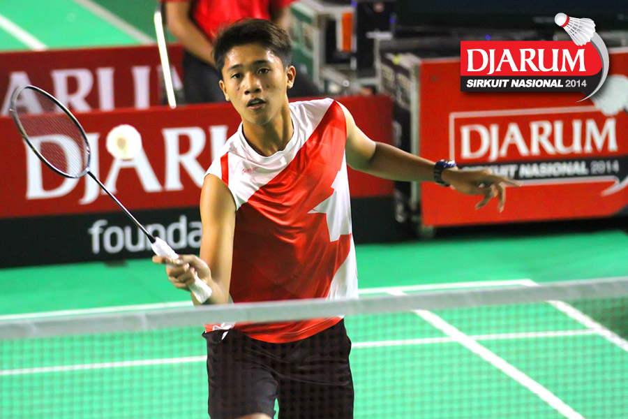 M. Zahrul Sani (Sarwendah) bersiap mengembalikan shuttlecock ke arah Hilmi B (PPLP Sulut)
