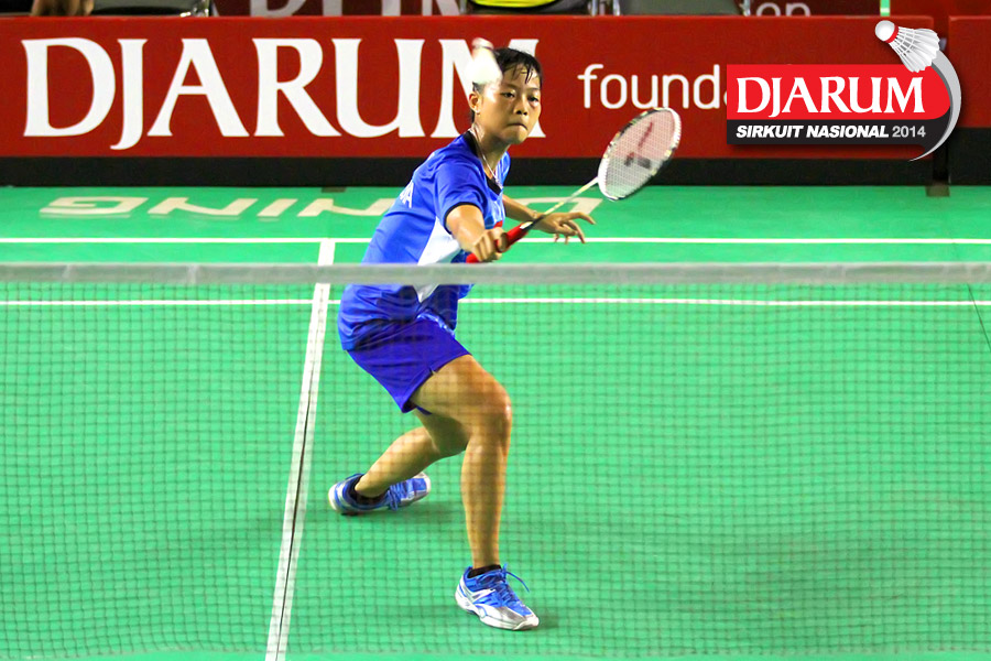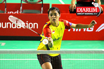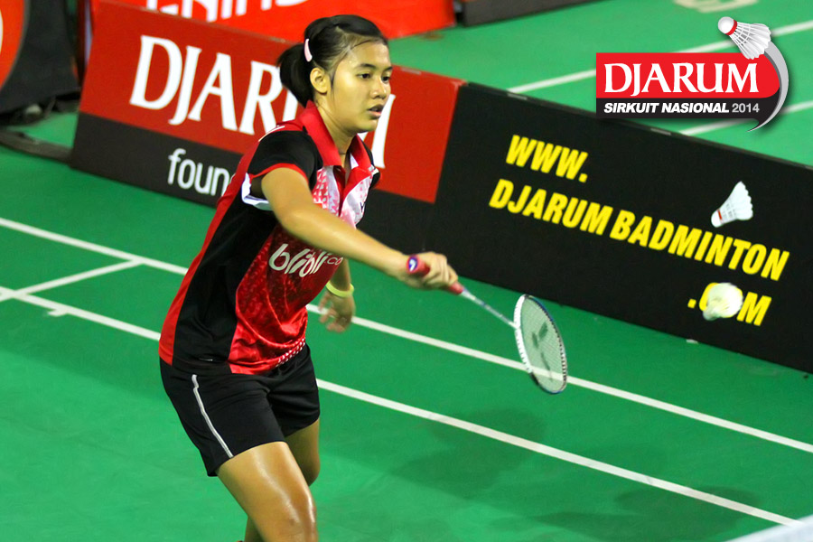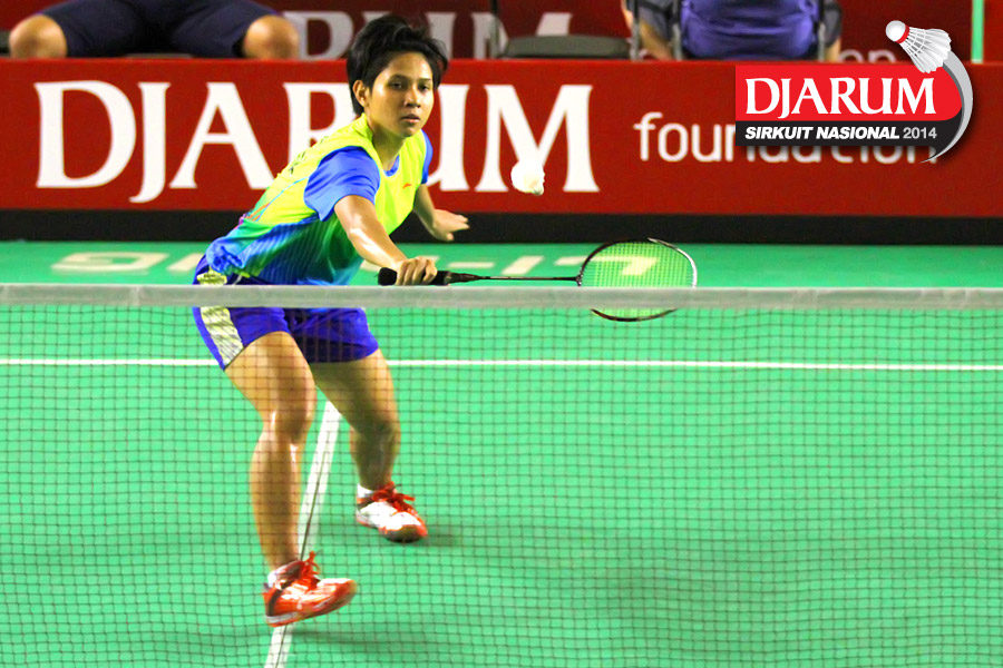 Fitriani (Pelatnas) berhasil menghadang serangan yang dilepaskan Febby Angguni (PB Djarum)