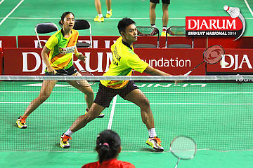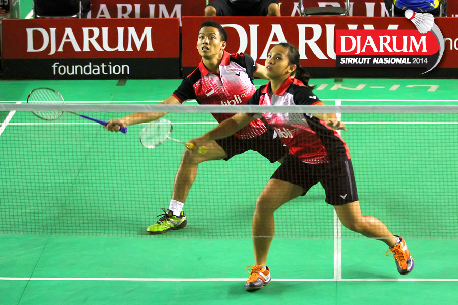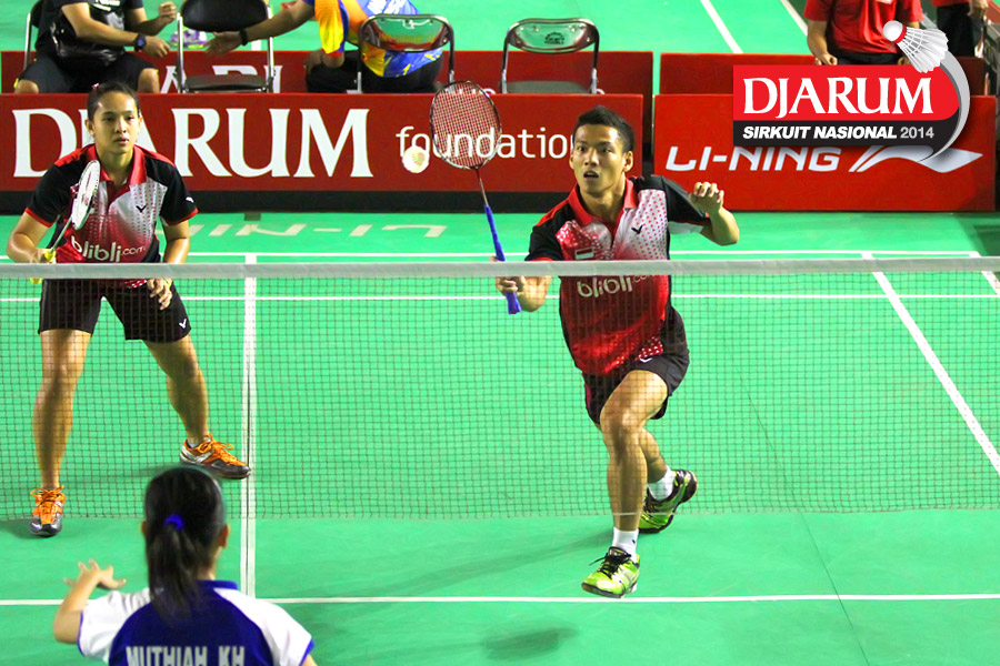 Fran Kurniawan/Komala Dewi (PB Djarum) berhasil menghadang serangan yang dilepaskan Arya Maulana/Maretha Dea (Pelatnas)