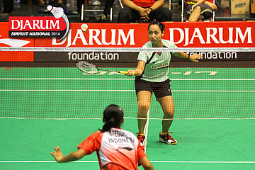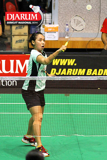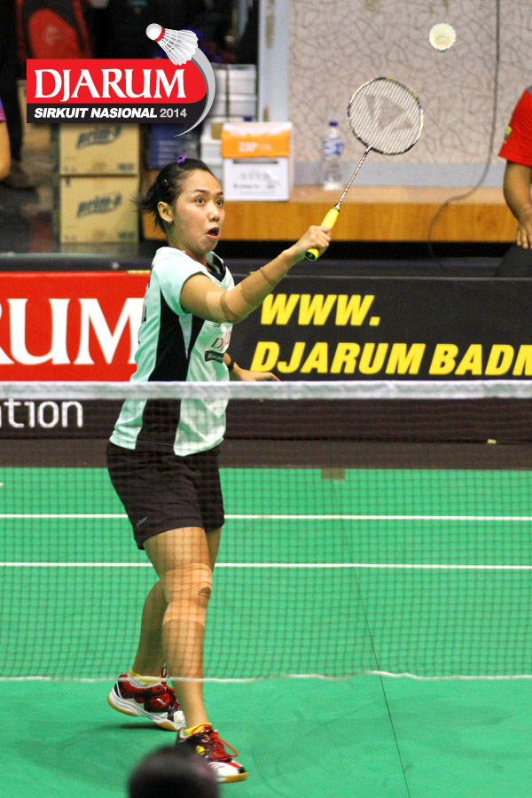 Ana Rovita (PB Djarum) bersiap menyambar pengembalian dari Gregoria Mariska (Pelatnas).