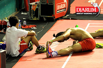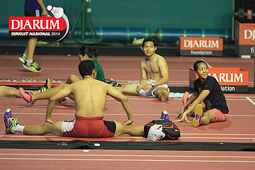 Salah satu atlet Djarum Kudus saat melakukan peregangan usai berlatih