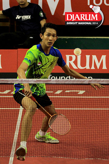 M. Bayu Pangisthu (Pelatnas) berusaha menggapai pengembalian dari Wisnu Yuli (Suryabaja)