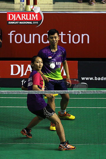 Yusril Argya/Peni Lanjarsari (Suryanaga Surabaya) menyambut pengembalian