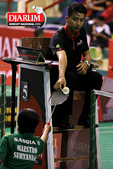 Salah satu Umpire saat menyerahan pergantian shuttlecock