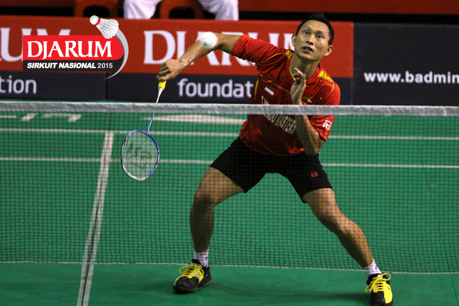 Sony Dwi Kuncoro (Tjakrindo Masters) mengembalikan shuttlecock
