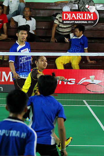 Asmi (Hi Qua Wima) bersiap menyambar pengembalian tanggung dari Sulthan Akmalrullah (PB Djarum)
