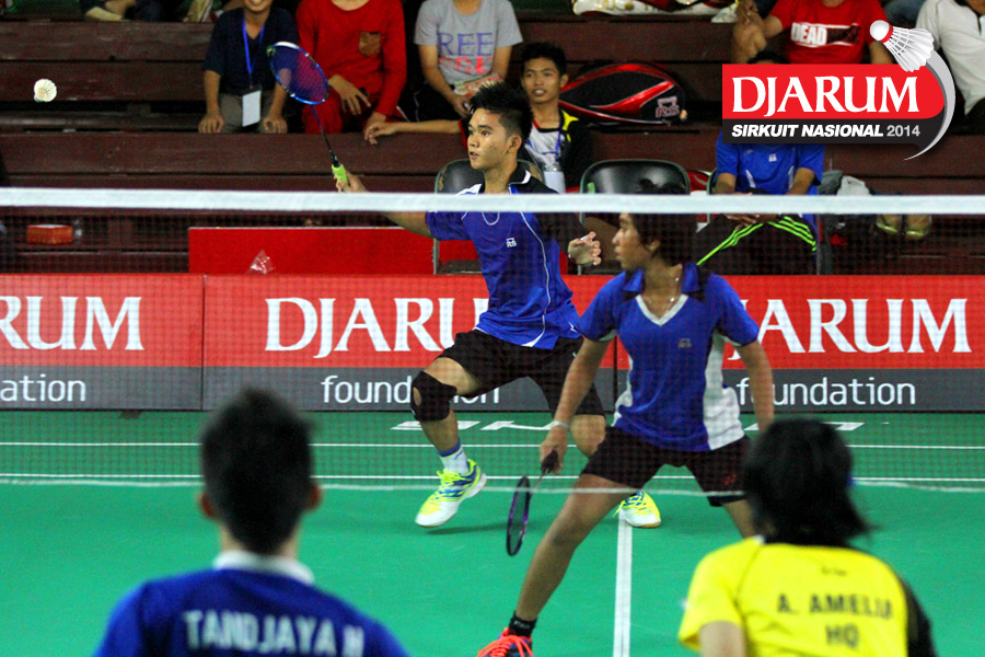 Sulthan Akmalrullah (PB Djarum) mengembalikan shuttlecock ke arah Asmi (Hi Qua Wima)