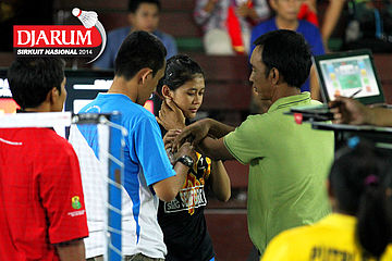 Berlian Sudrajat (Semen Gresik) saat mendapatkan penanganan medis