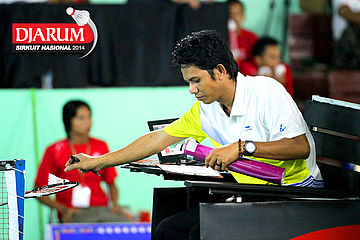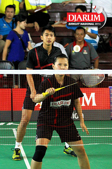 Ricky Alverino/Komala Dewi (PB Djarum) bersiap menyambut pengembalian dari M. Ilyas/Yeni (Mustika Banjar Baru)