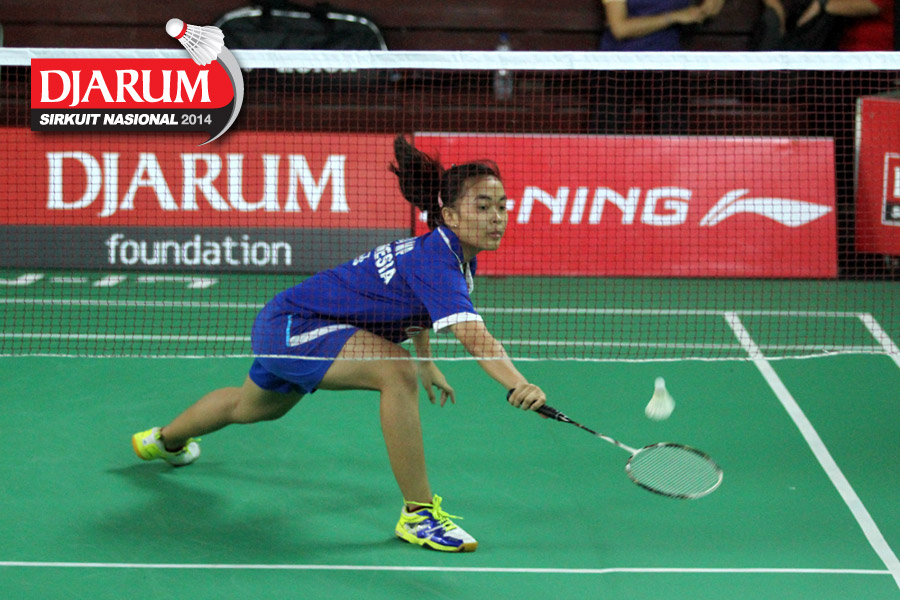 Ricky Alverino/Komala Dewi (PB Djarum) mengembalikan shuttlecock ke arah M. Ilyas/Yeni (Mustika Banjar Baru)