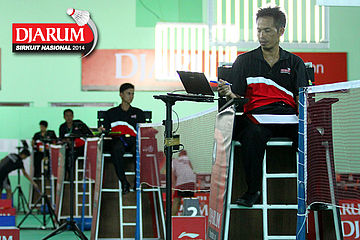 Para wasit saat memimpin jalannya pertandingan Djarum Sirkuit Nasional Li-Ning Open Kalteng Open 2014