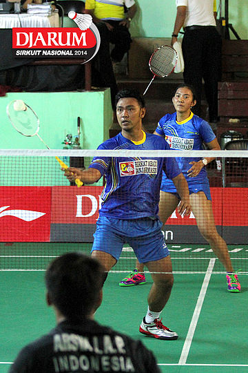 Trikus Haryanto/Natalia Poluakan (Tjakrindo Masters/Tangkas) berhasil menghadang pengembalian dari Hantoro/Deariska Putri (PB Djarum)