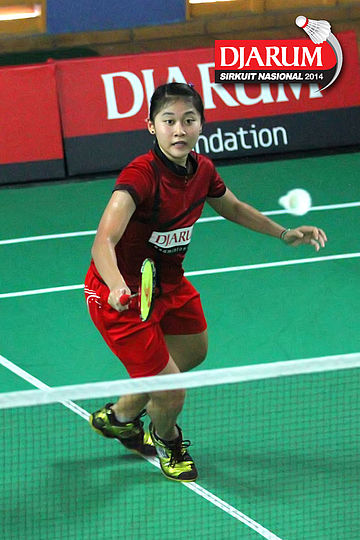 Marsa Indah Salsabila (PB Djarum) bersiap menyambut pengembalian dari Novi (PB Bintaro Jaya Raya).