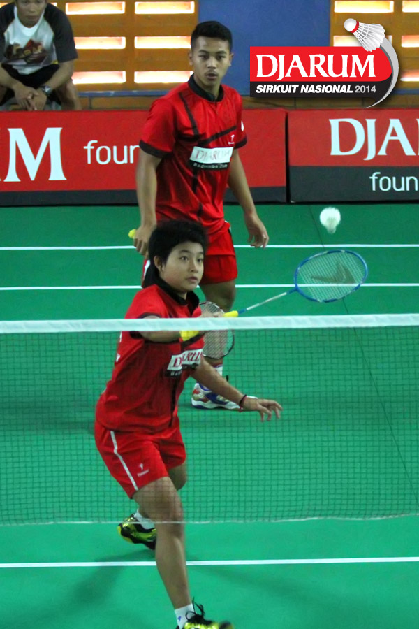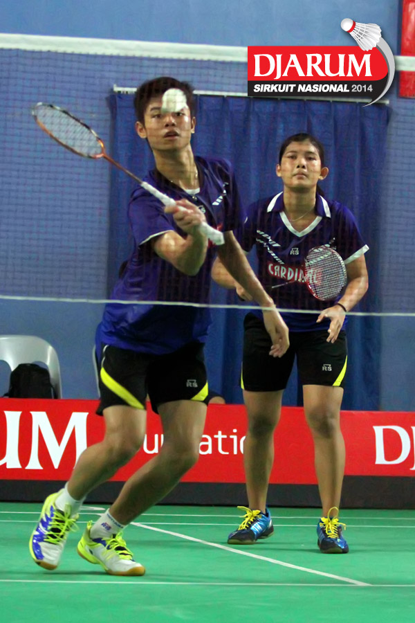 Beno Drajat/Yulfira Barkah (Mutiara Bandung) mengembalikan shuttlecock ke arah Jeka Wiratama/Chintia Rhizta (PB Djarum).