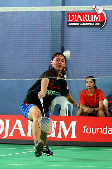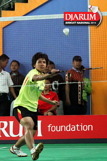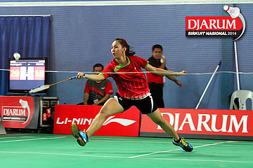 Yeni Asmarani (PB Djarum) berusaha menggapai pengembalian dari Tieke Arieda (Jaya Raya Suryanaga).
