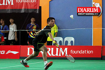Ramadhani M. Zulkifli (PB Djarum) menyambut serve dari Ryan Ivano (Jaya Raya Suryanaga).