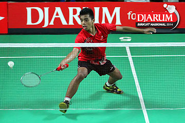 Chico Aura (Exist) bersiap menyambut pengembalian dari Erick Eriawan (PB Djarum).