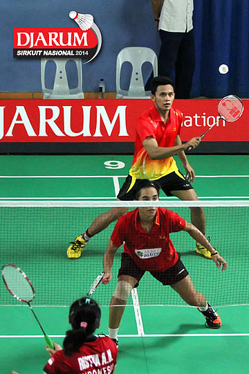 Rizky Hidayat/Nadya Melati (Hi Qua Wima/Pertamina Indonesia) bersiap menyambut pengembalian dari Ricky Alverino/Ristya Ayu (PB Djarum).