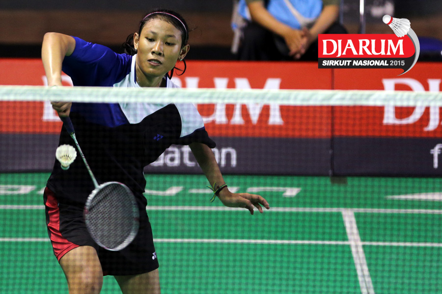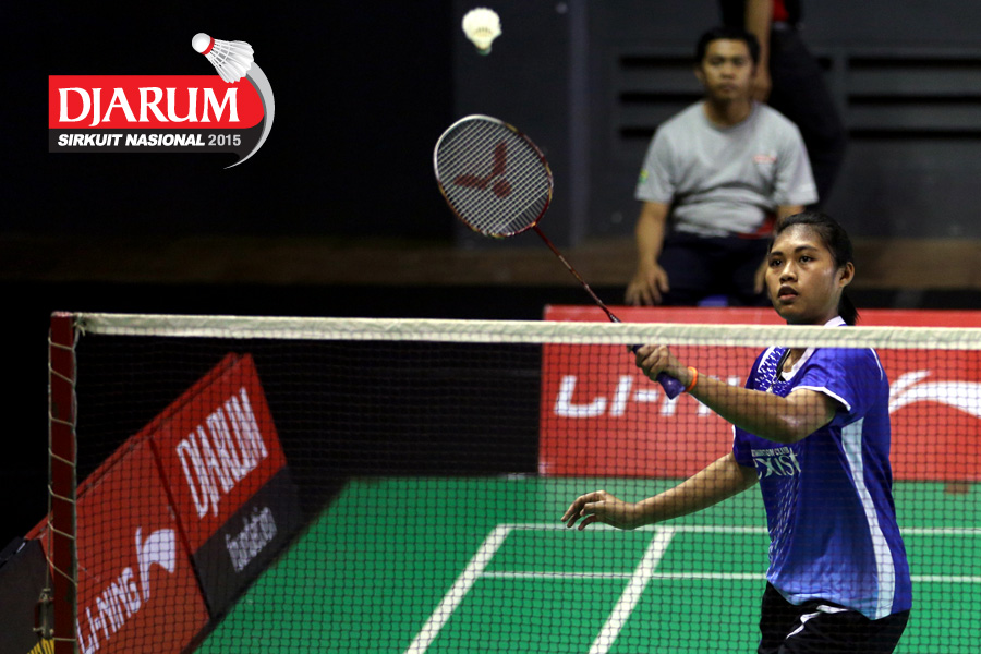 Ersa Narulia (Jaya Raya) bersiap mengembalikan shuttlecock