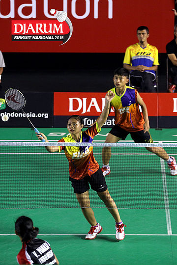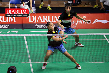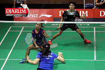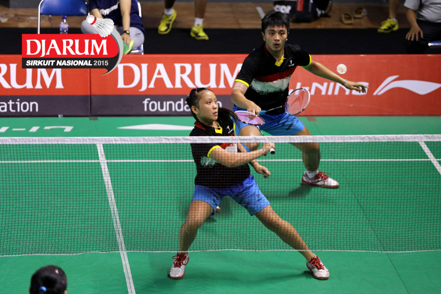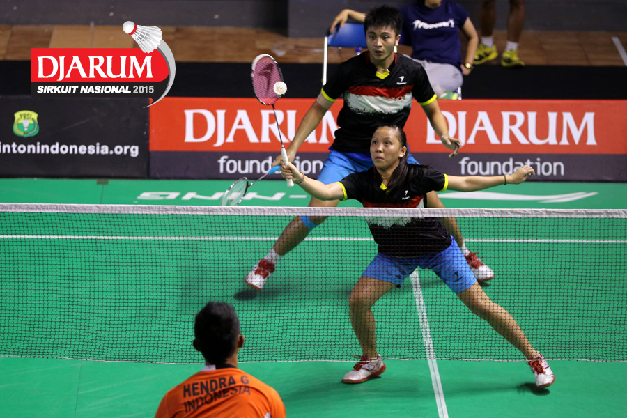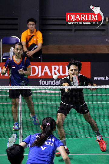 Zachariah Josiahno/Winny Oktavina (Tangkas) bersiap menghadang serangan