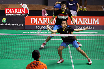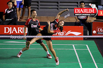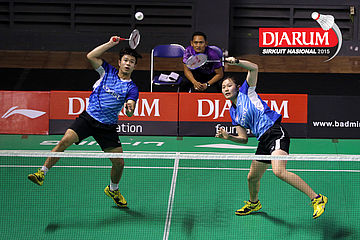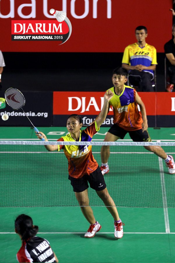 Hendra Gustiawan/Brigita Marcelia (Bandar Baru/Exist) bersiap menyambar pengembalian