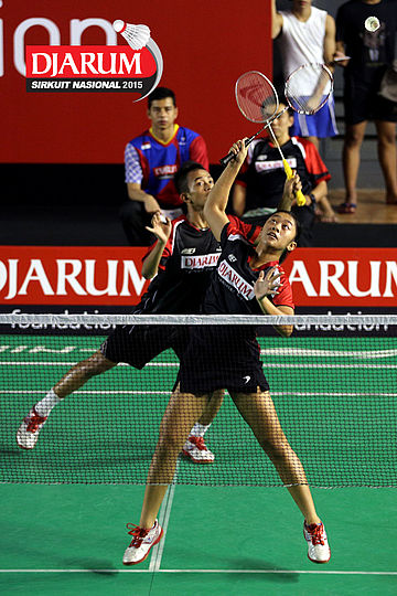 Aditya Muchis/Anis Mubarokah (Fifa BC) menyambar pengembalian tanggung