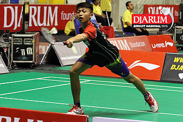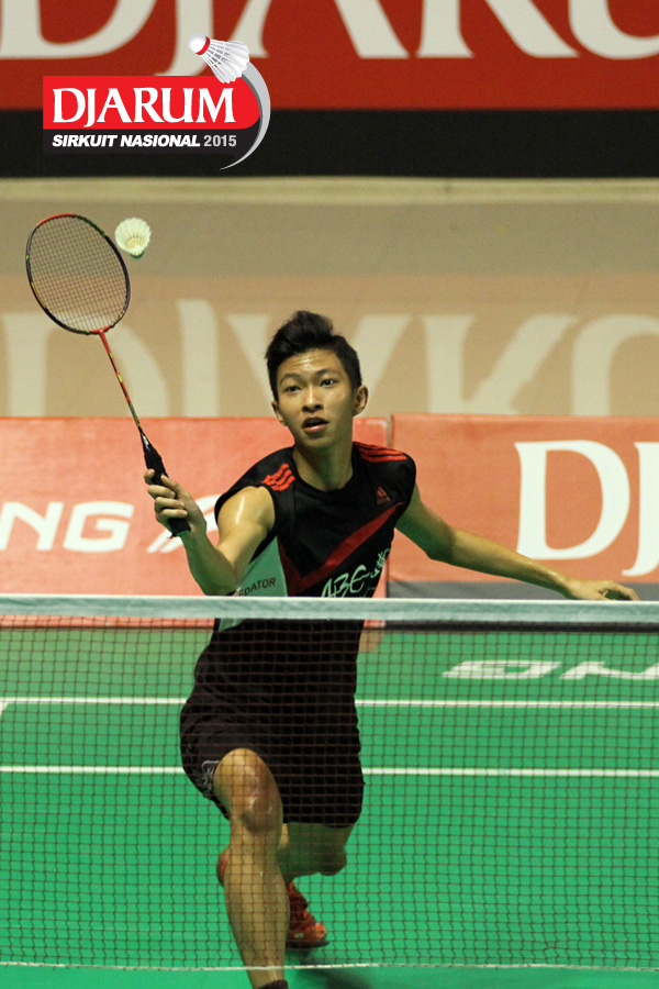 Tri Cahyo (Djarum Kudus) mengembalikan shuttlecock.