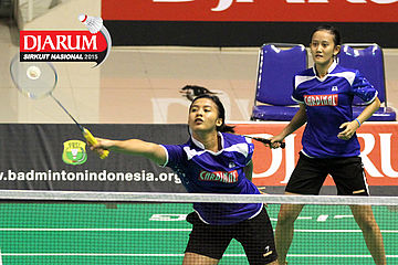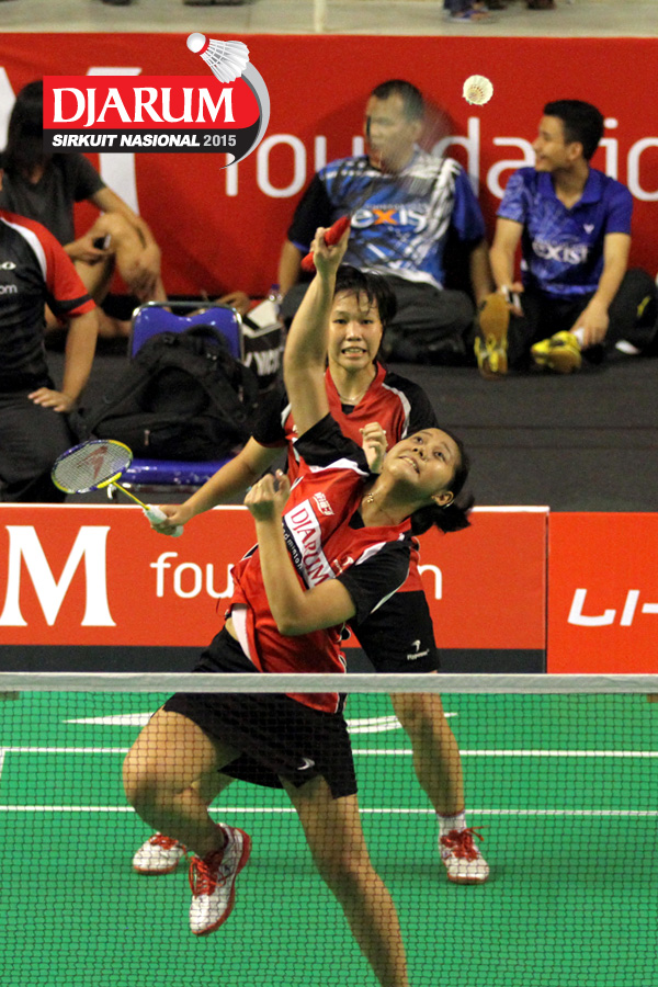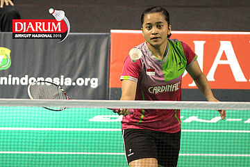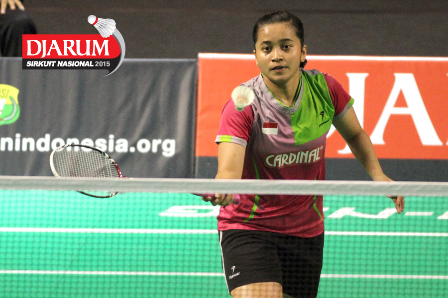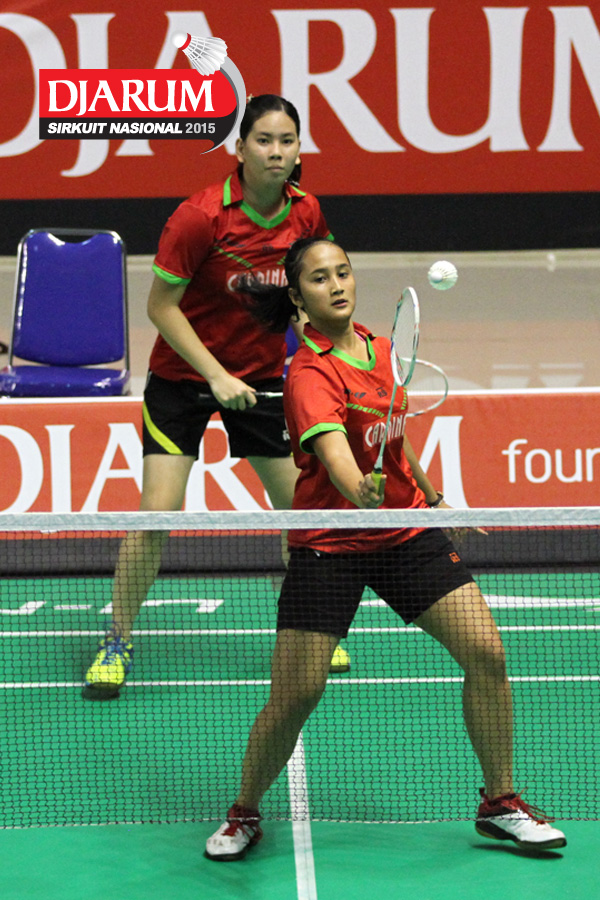 Ludwina/Rona (Djarum Kudus) mengembalikan shuttlecock.