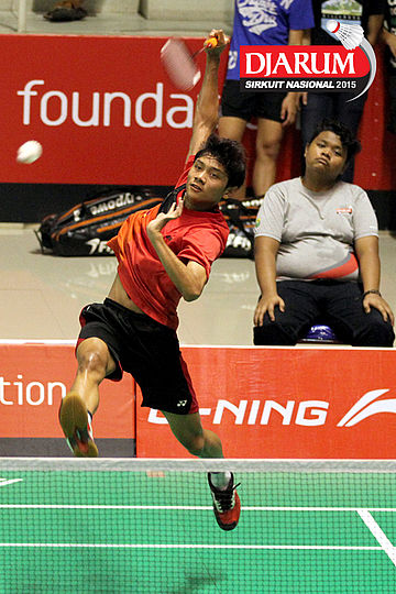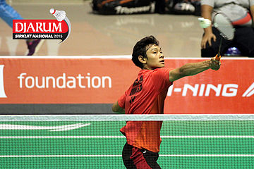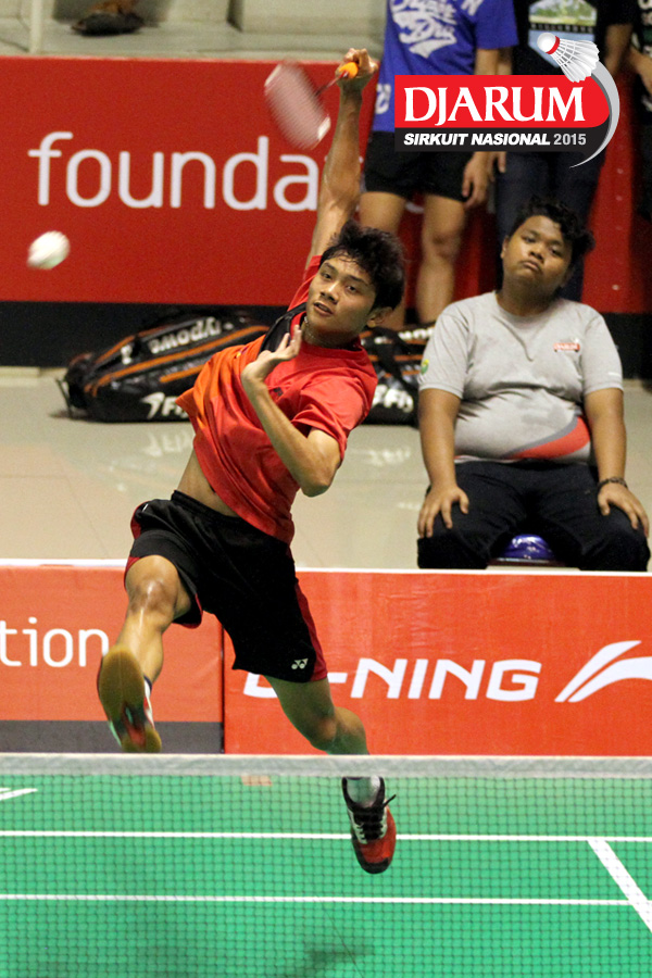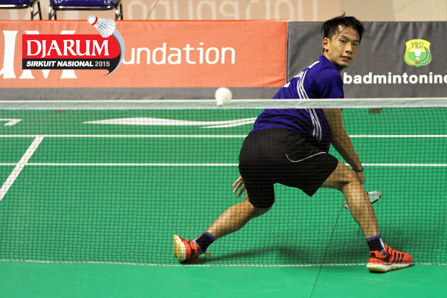 Fahmi Mubarok (Candra Wijaya) mengembalikan shuttlecock.