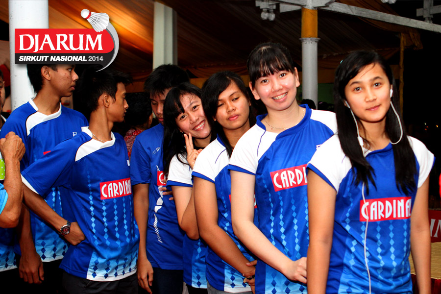 Beberapa pebulutangkis Mutiara Bandung terlihat mengantri sebelum menyantap makan malam yang tersaji di dalam acara Welcome Dinner Djarum Sirkuit Nasional Li-Ning Sulawesi open 2014 di Rumah Jabatan Gubernur Sulawesi Selatan.