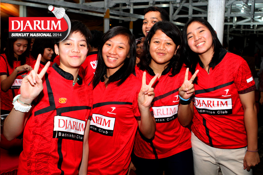 Beberapa pebulutangkis putri PB Djarum bersiap menyantap makan malam yang tersaji di dalam acara Welcome Dinner Djarum Sirkuit Nasional Li-Ning Sulawesi open 2014 di Rumah Jabatan Gubernur Sulawesi Selatan.
