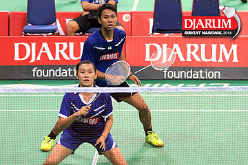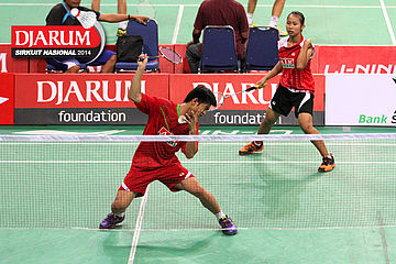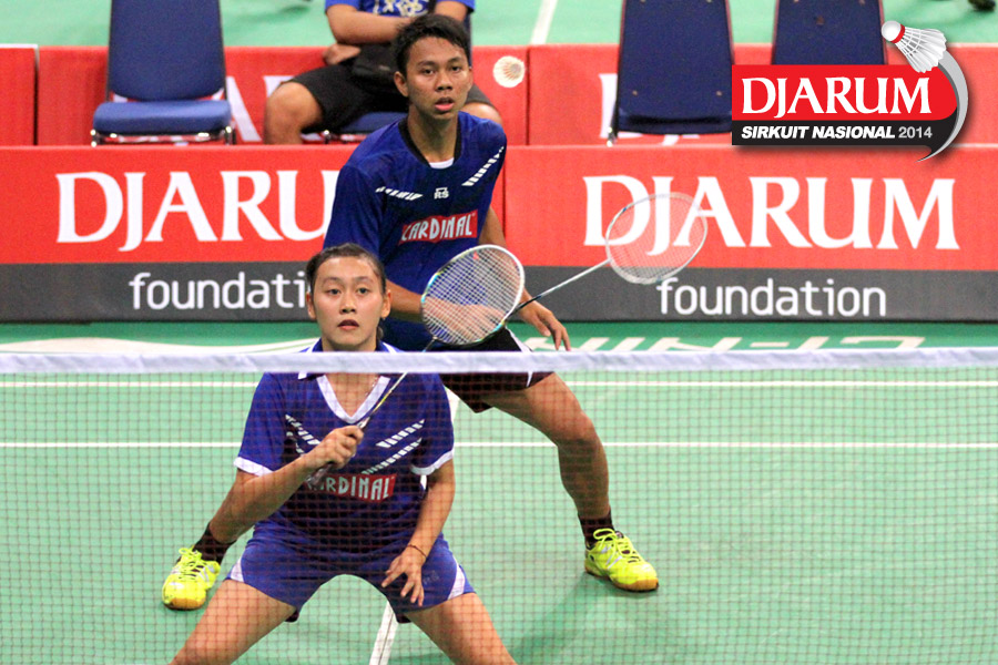 Selamet Nurcahyo/Jessica Wardana (Mutiara Bandung) bersiap menyambut pengembalian dari Hiski/Hasri (Jaya Raya Suryanaga).
