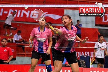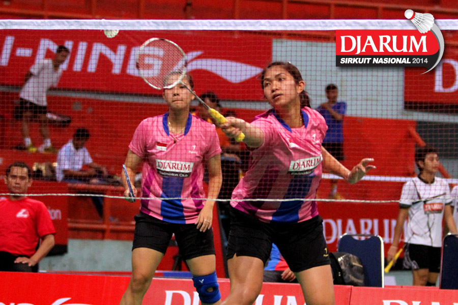 Ravenska Cintya/Ristya Ayu (PB Djarum) menyambar pengembalian dari pasangan Devi Tika Permatasari/Keshya Nurvita Hanadia (SGS PLN).