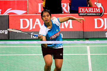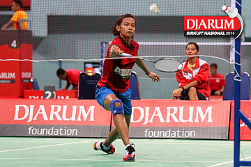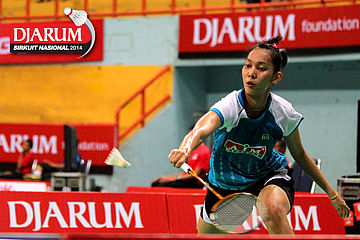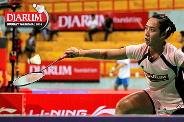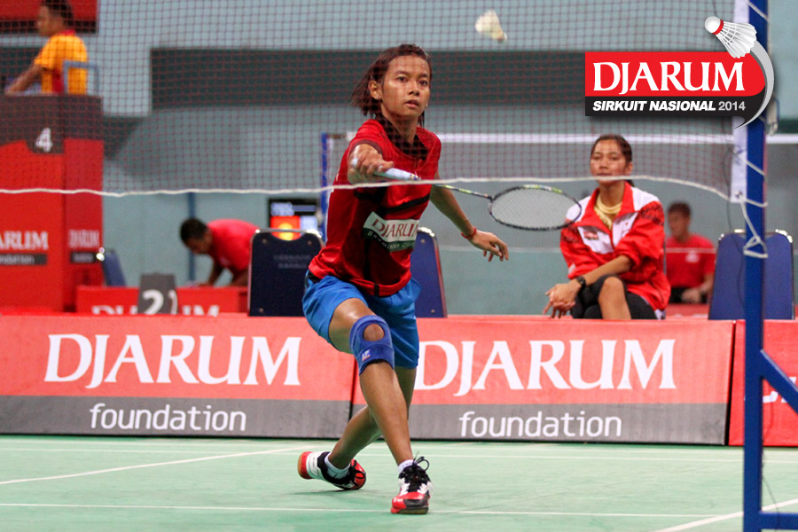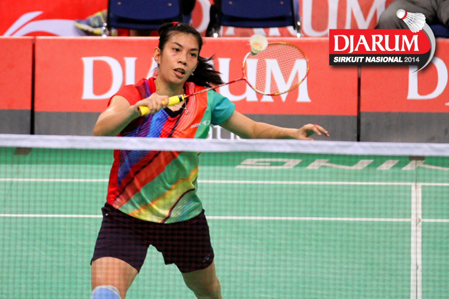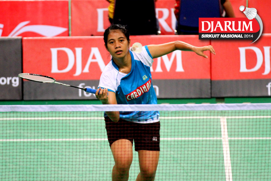 Ana Rovita (PB Djarum) berhasil mengembalikan dropshoot yang dilepaskan Tieke Arieda (Jaya Raya Suryanaga).