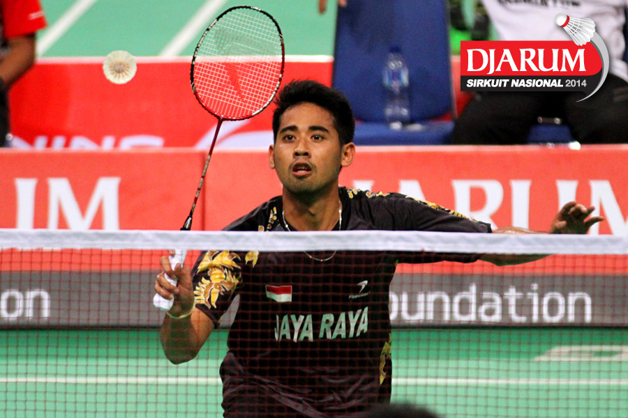 Hermansyah (Jaya Raya) bersiap menyambar pengembalian dari Nugroho Andi (JR Enkei).