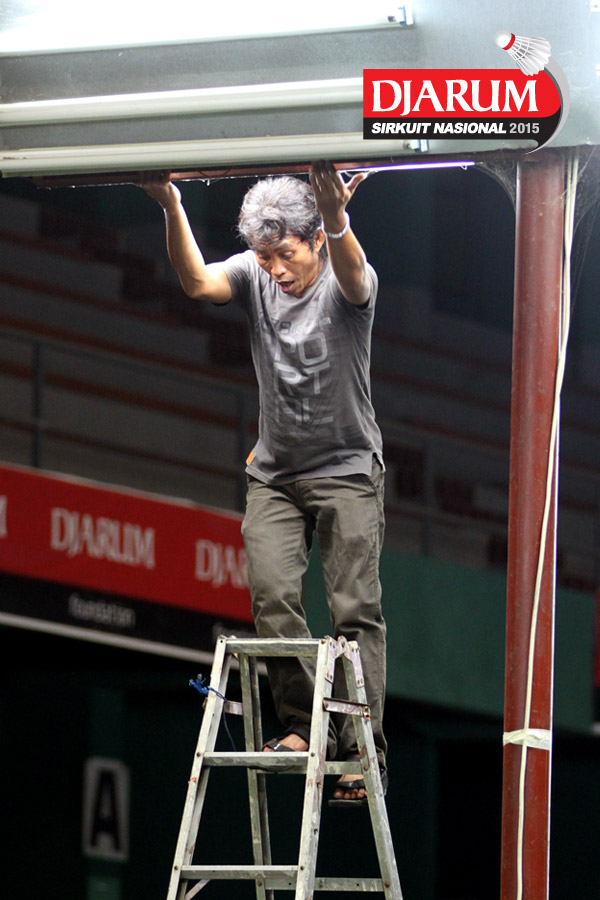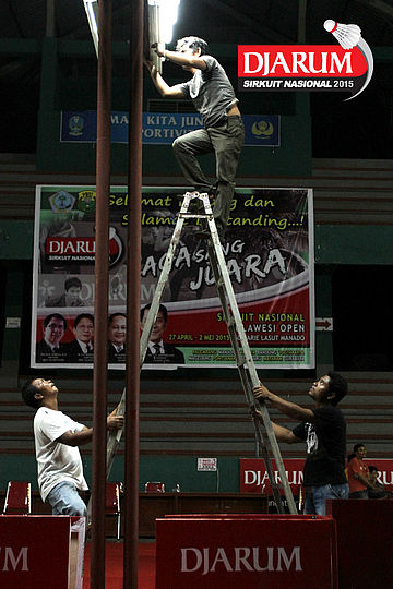 Suasana GOR Arie Lasut Manado, Sulawesi Utara sebelum penyelenggaraan Djarum Sirkuit Nasional Li-Ning Sulawesi Utara Open 2015