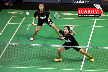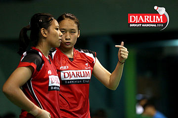 Felicia Parmenas/Tutut Novi (Djarum Kudus) saling berkoordinasi.