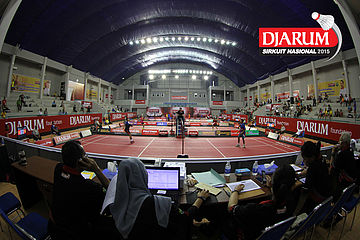Suasana Djarum Sirkuit Nasional Li-Ning Sumatera Selatan Open 2015 di GOR Dempo Jakabaring Sport City, Palembang