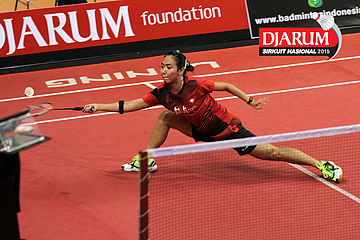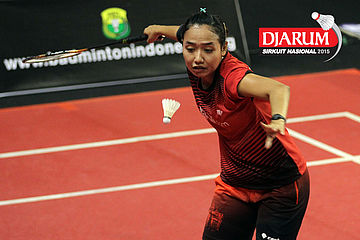 Ana Rovita (Djarum Kudus) berhasil menggapai pengembalian dari Aprillia Yuswandari (Semen Gresik)