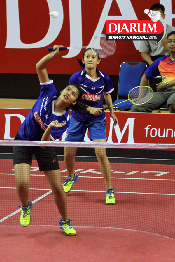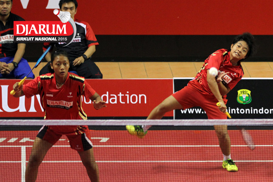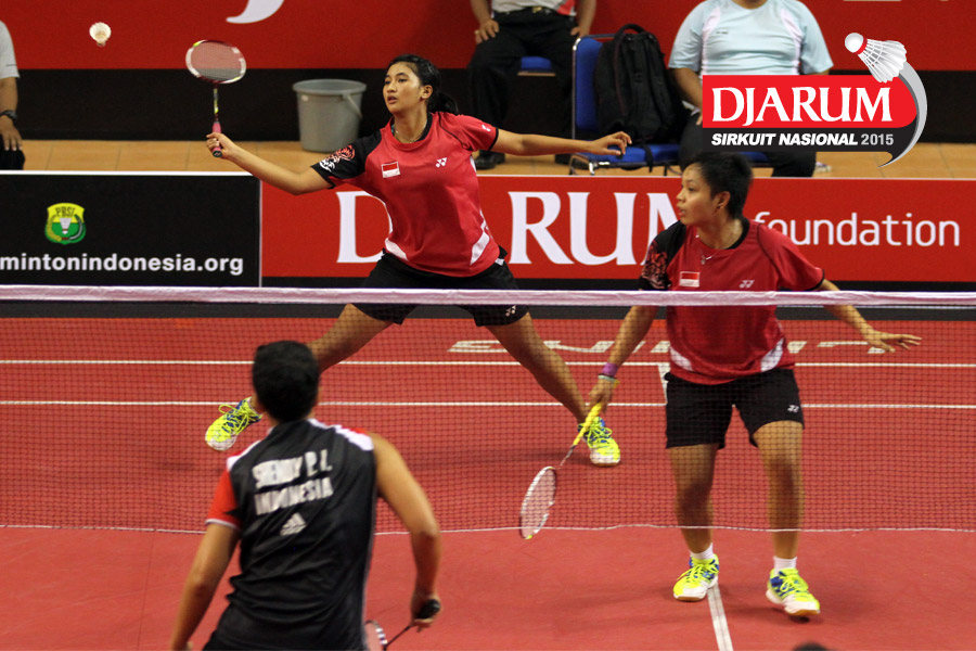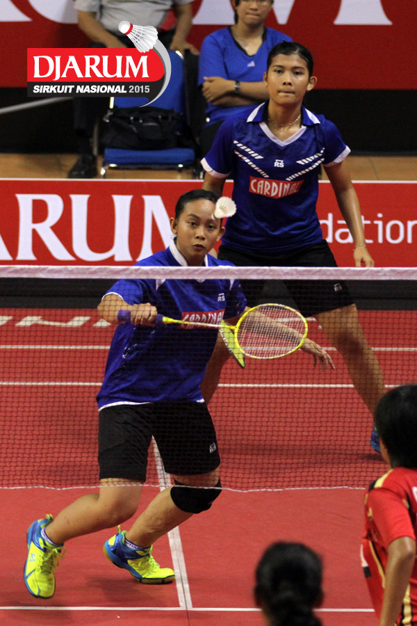 Shendy Puspa/Vita Marissa (Djarum Kudus) mengembalikan shuttlecock ke arah Jauza Fadhila/Apriyani Rahayu (Pelatprov PBSI DKI Jakarta)