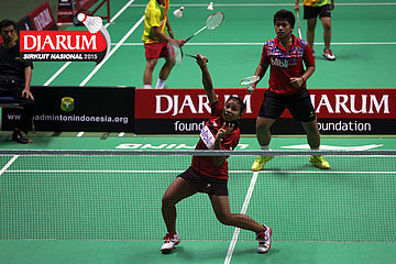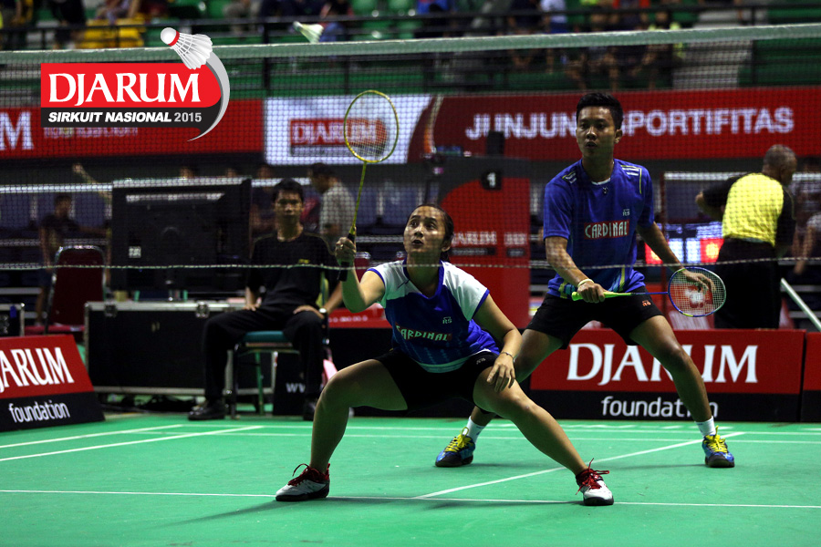 Aji Firmansyah/Bunga Fitriani (Mutiara Cardinal) menyambar pengembalian.