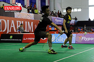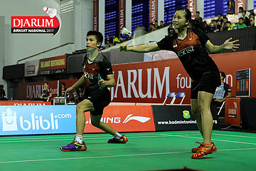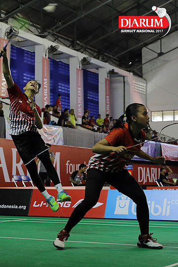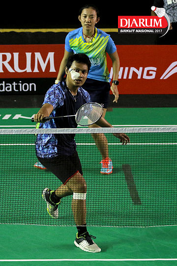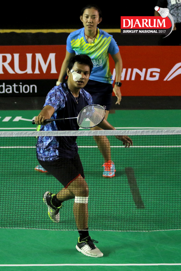 Didit Juang Indrianto/Devi Tika Permatasari (Suryanaga Mutiara Timur/Berkat Abadi) Mengembalikan Shuttlecock