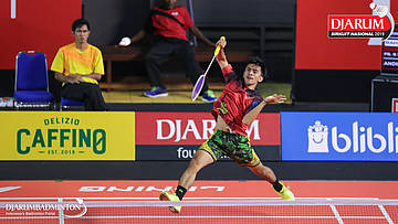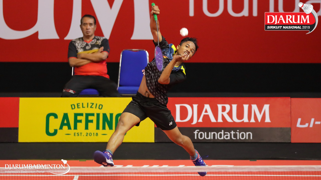 Andika Ferdiaz (PB. Rudy, Mataram) menyambut shuttlecock