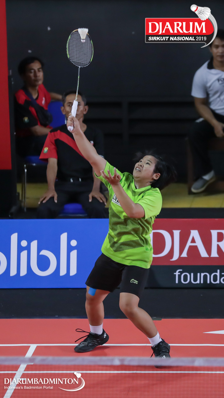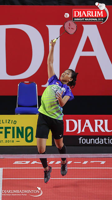 Elok Machsunnah (Pratama Badminton Academy, Sby) mengembalikan shuttlecock