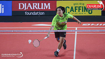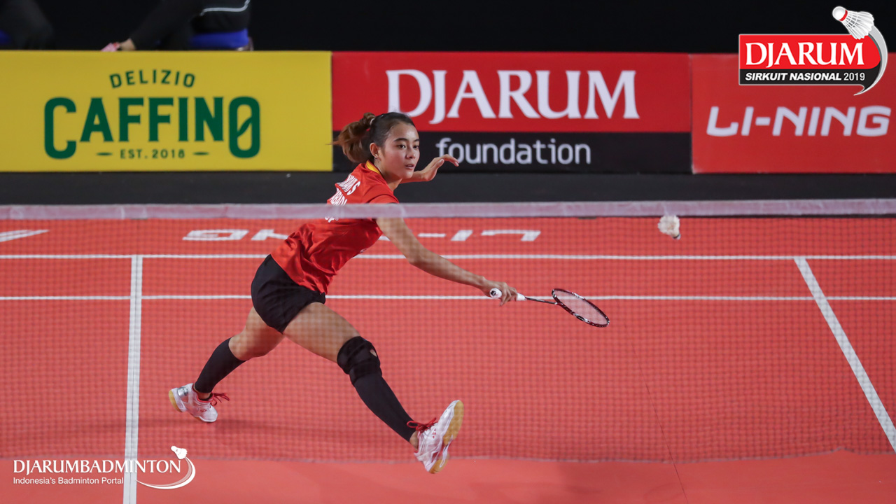 Elok Machsunnah (Pratama Badminton Academy, Sby) menggapai pengembalian