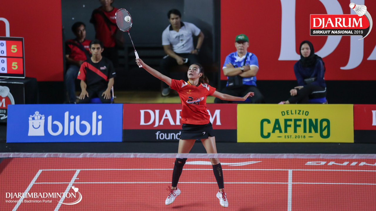 Tiara Ayuni Wulandari (Exist Badminton Club) menyambut pengembalian