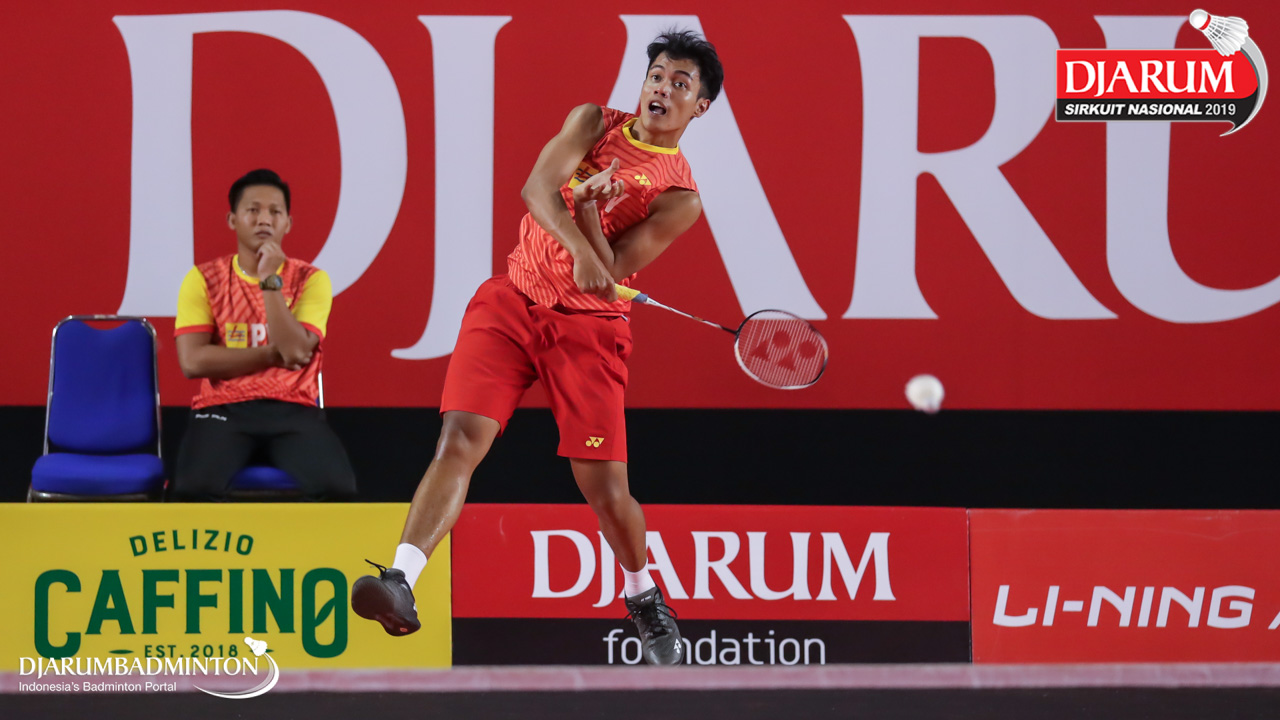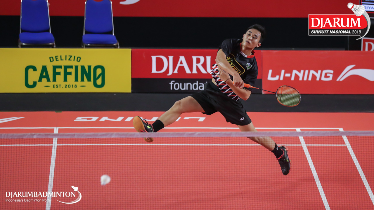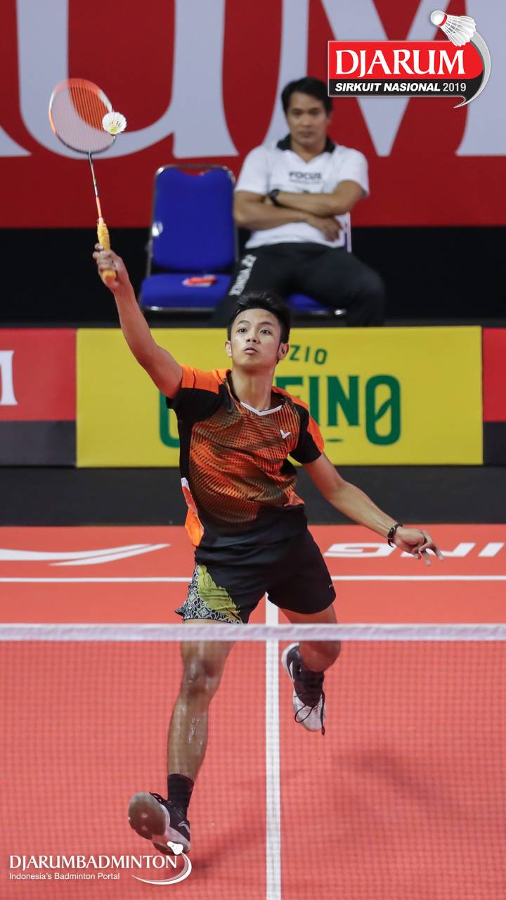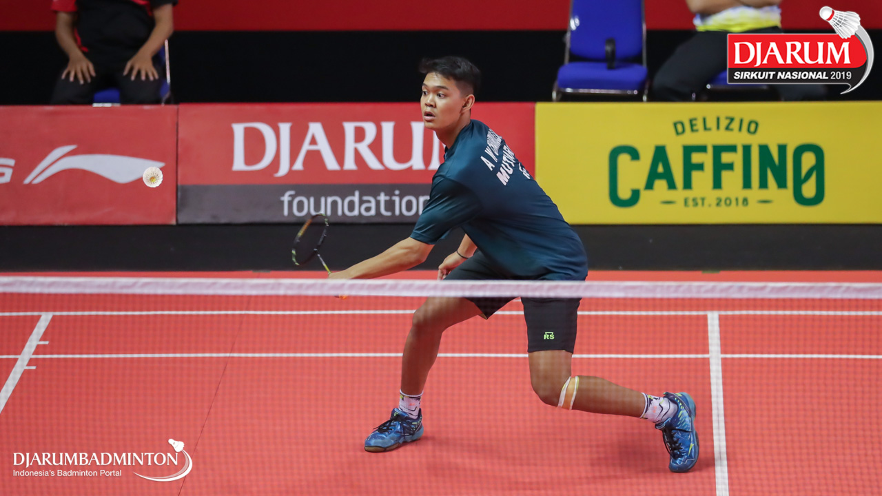 Alvi Wijaya Chairullah (Mutiara Cardinal, Bandung) bersiap menyambut shuttlecock